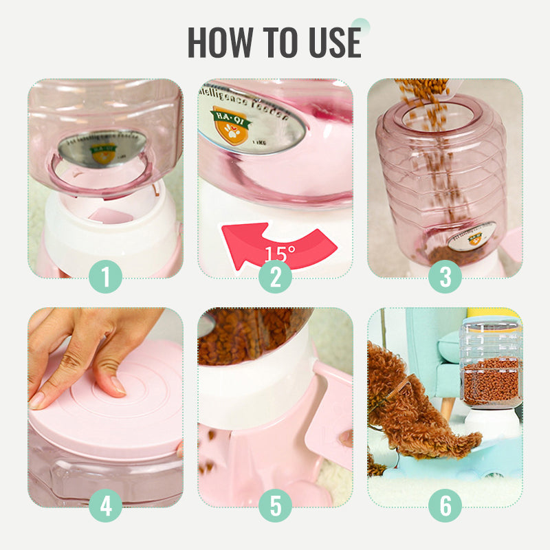 Step 2: Rotate the bucket body clockwise by 15°. Pour in an appropriate amount of food.