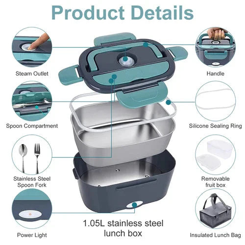 - Caja de Almuerzo Calentada Aislada y Portátil (1.5L) x1