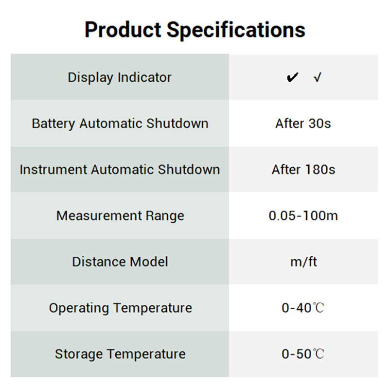 TARKKA LASERMITTAUS: Tämä etäisyysmittari on varustettu kehittyneellä lasertekniikalla ja mittaa tarkasti jopa 40 metrin etäisyydelle, mikä takaa luotettavuuden kotiremontteihin, huonekalujen sijoitteluun ja kiinteistöjen tarkasteluun. Jätä arviointivirheet historiaan ja tervetuloa tarkkuuden maailmaan.